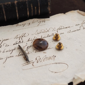 こちらはペン先を剣、ヴィンテージカメオを盾として見立てた、「ペンと盾」という名の2個セットのアイテムです。