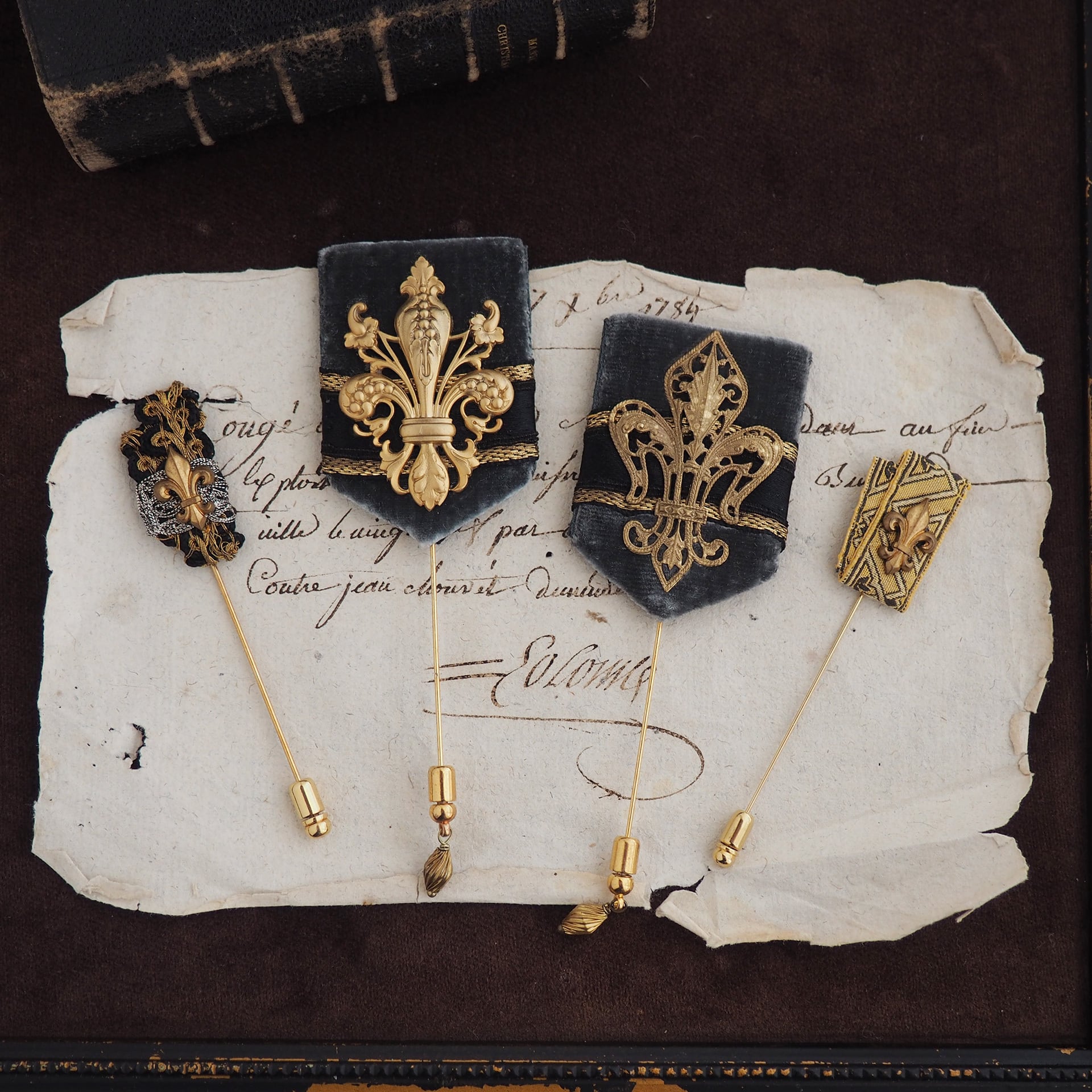 ヴィンテージのユリの紋章がポイントのピンブローチです。